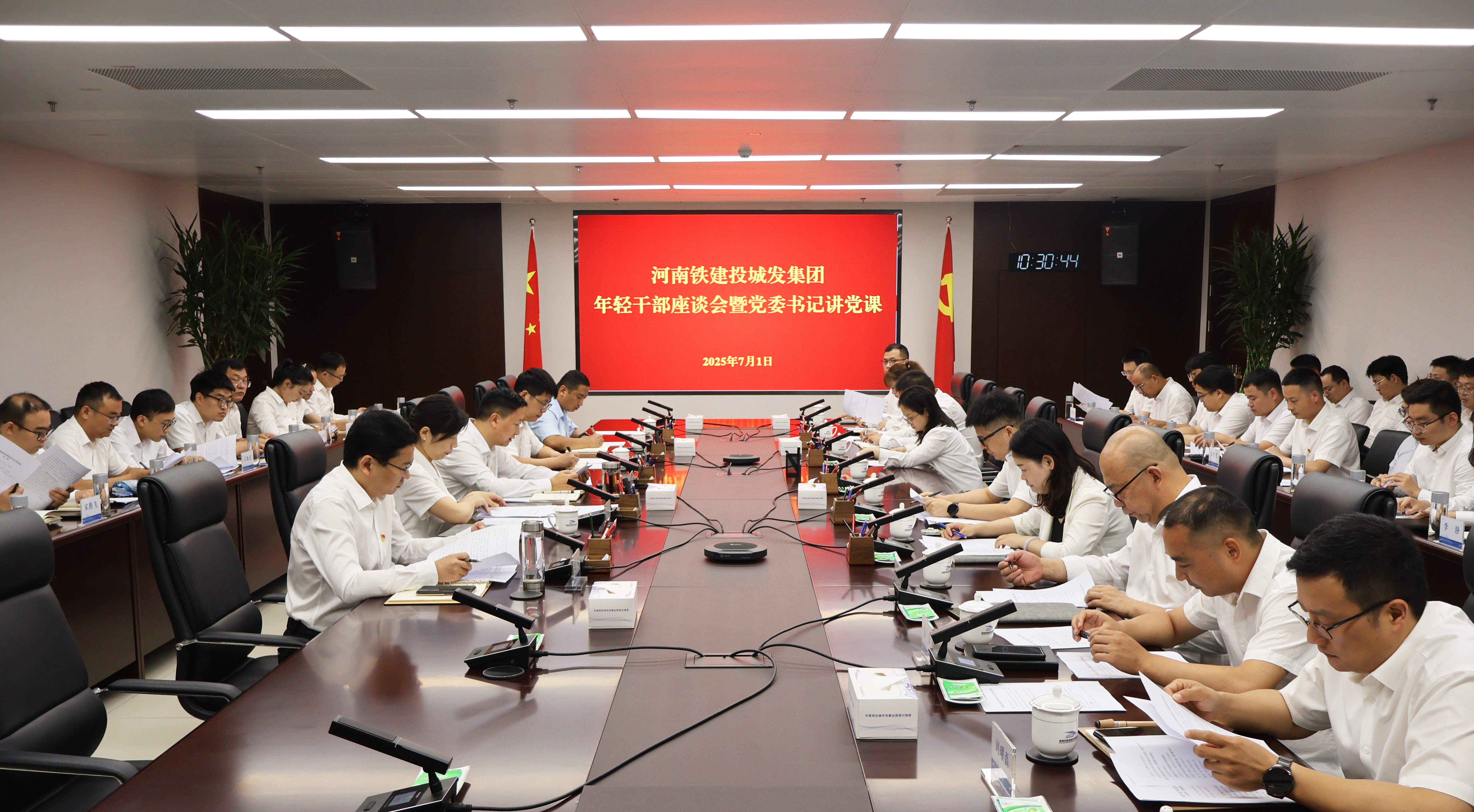 在中國共產黨成立104周年之際,7月1日,鐵建投城發(fā)集團黨委書記、董事長許會戰(zhàn)主持召開集團年輕干部座談會,作深入貫徹中央八項規(guī)定精神學習教育專題黨課。集團黨委副書記、紀委書記王兵兵主持。集團領導班子成員,各部門負責人,43名年輕干部參加會議。
